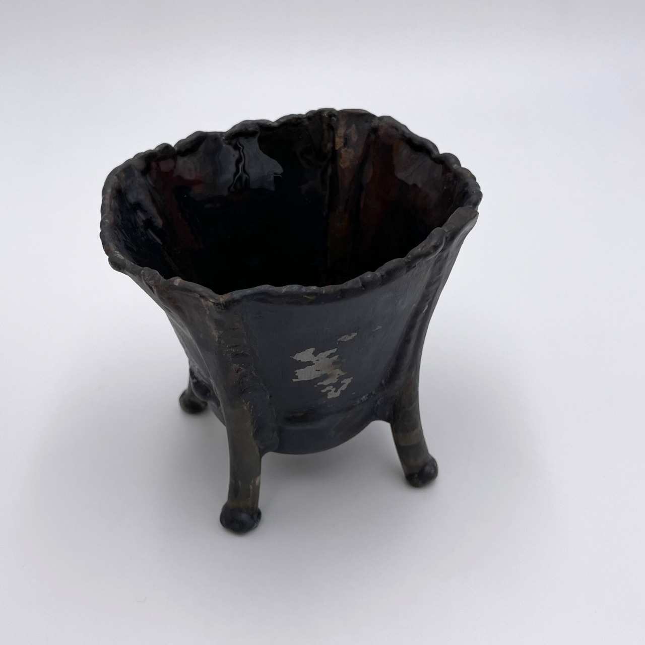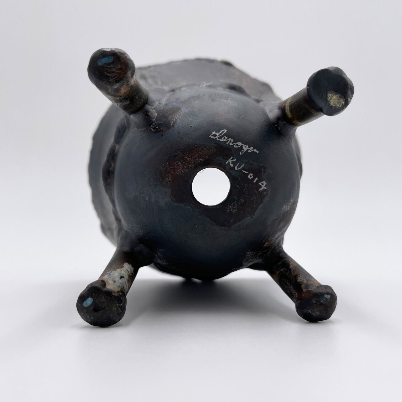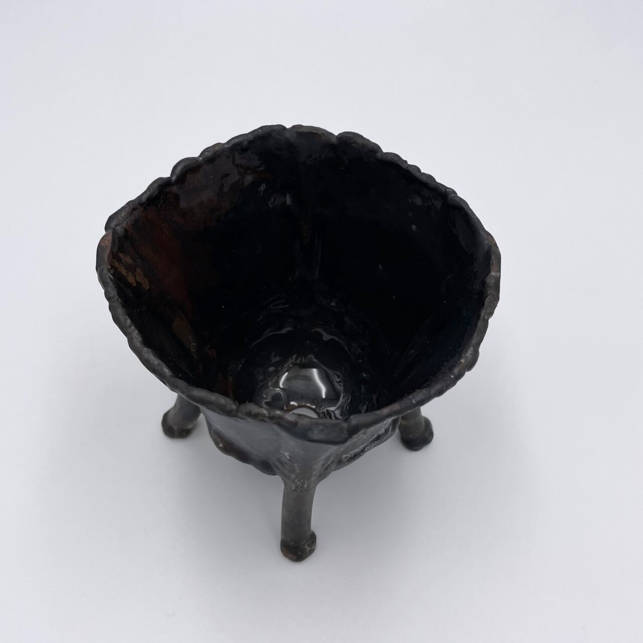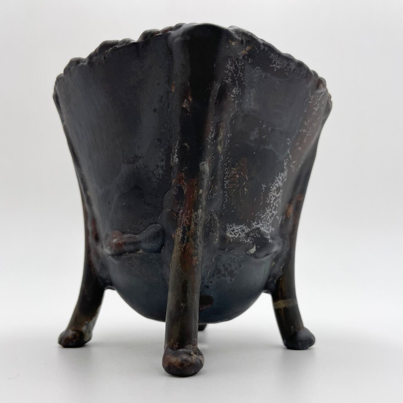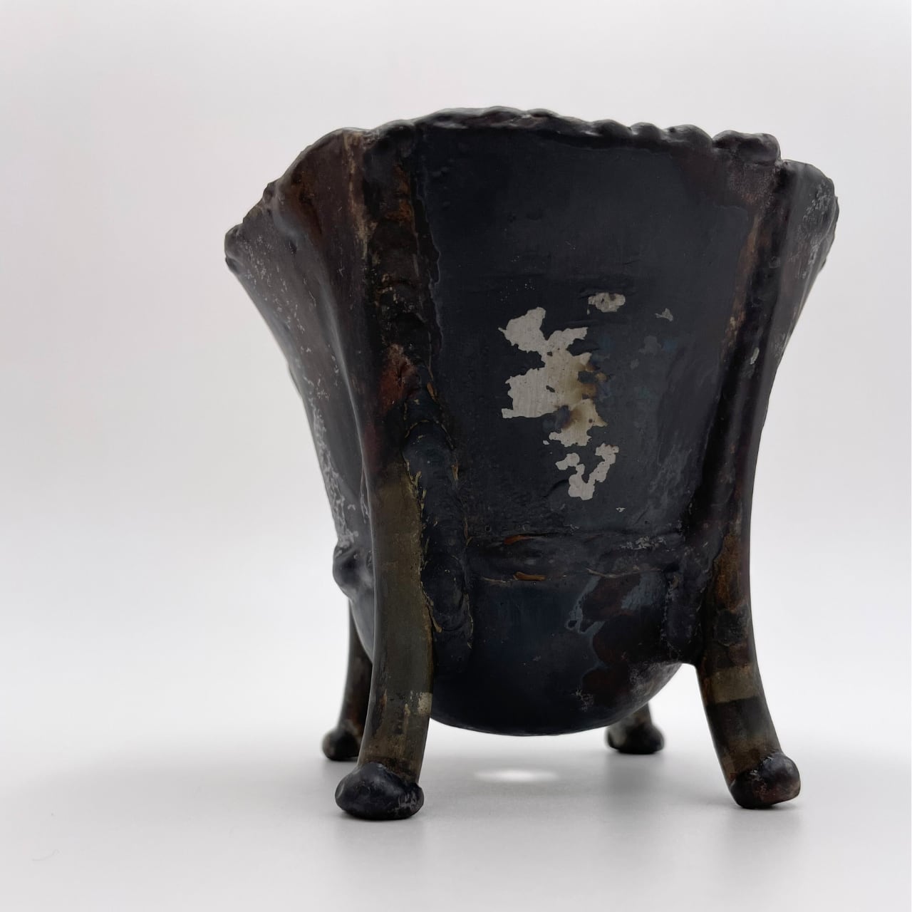 素材の鉄がもともと持っていたスレたようなあとや溶接のあとなどをそのまま生かした、無骨で味わい深い仕上がり。