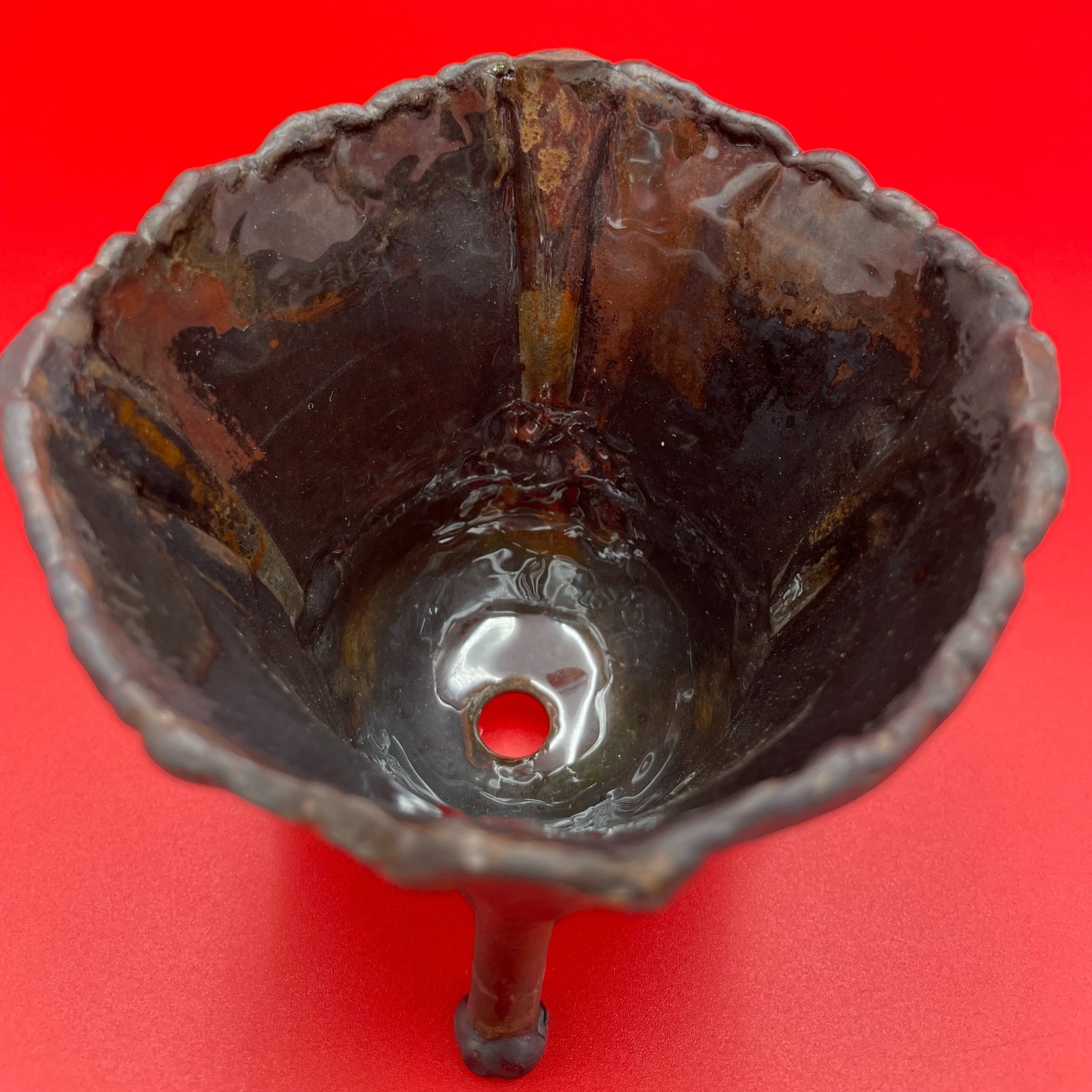 底面に穴が開いているので水はけもよく、外側はクリア塗装で仕上げ、内側はレジンでコーティングをしているため、すぐには錆びない作りになっています。